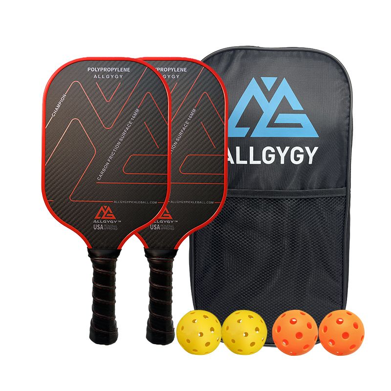 ALLGYGY CHAMPION B1 3K Carbóin Snáithín Pioclán Paddle Set Buntáistí: Is é grit snáithín carbóin an rogha ábhar is fearr le haghaidh paddles pickleball gairmiúla. Ní hamháin go gineann sé casadh dÚsachtach, cruthaíonn sé láthair milis ollmhór freisin le haghaidh cothromaíocht foirfe cumhachta agus rialaithe.